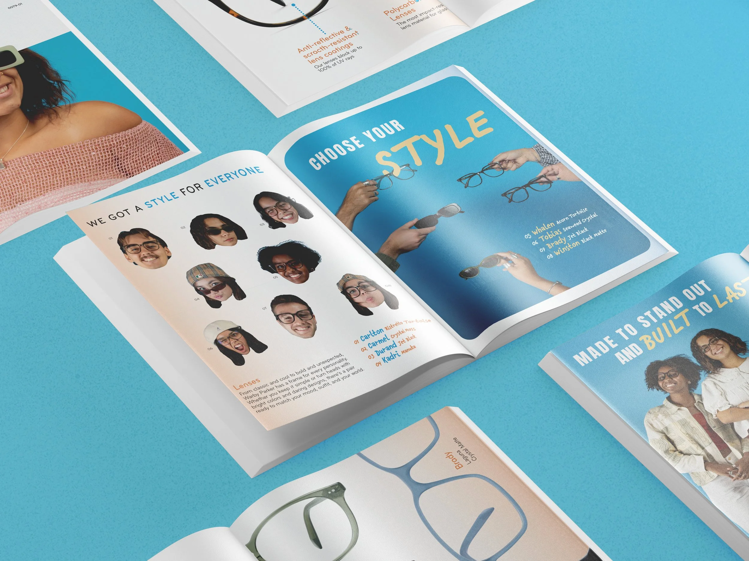 For this project, I led the art direction, photography, layout design, and supporting marketing materials. The visual approach uses bold compositions, fun typography, and lifestyle-driven imagery to communicate personality and craftsmanship. Every spread is designed to inspire readers to see glasses as an extension of self-expression and a way to “frame” the world in their own style.